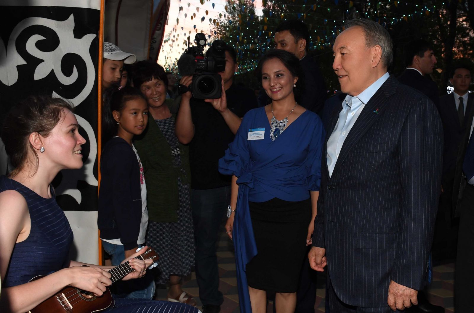 Соңында Нұрсұлтан Назарбаев Есіл өзенінің жағасында лазерлік шоуды тамашалады.