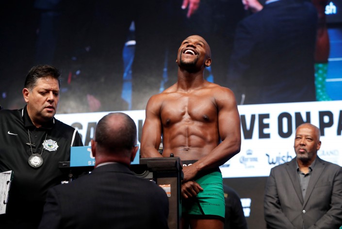 25 тамызда өткен салмақ өлшеу рәсімінің нәтижесі бойынша, ирландиялық боксш америкалық боксшыдан ауырлау болып шықты. Нақты айтар болсақ, МакГрегор 153 фунт (69,4 келі) болса, Мейвезер орта салмақтағы лимитке жете алмай, 149 фунт (67,8) келі болды.