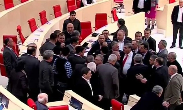 Грузияның парламенттік плеранлық отырысының соңы депутаттардың жаппай төбелесімен аяқталды. Елдегі басқарушы билік өкілдері мен оппозиция тобы залда бір-біріне жұдырық ала жүгірген. Жұлынған микрофон лақтырып, бір-бірін соққыға жыққан.