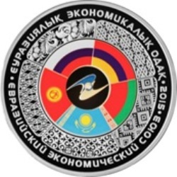 «Еуразиялық экономикалық одақ» ескерткіш монеталары Еуразиялық экономикалық комиссиясының Еуразиялық экономикалық одаққа мүше мемлекеттерде Одақтың бір жылдығына ескерткіш монеталарды қатар шығару жөніндегі ұсынысына сәйкес дайындалды. Монетаның сырт жағы тампобасуды қолдана отырып орындалған.