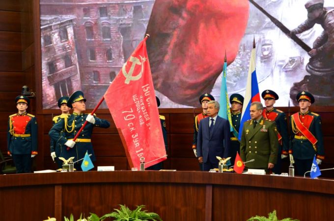 Бүгін, 23 желтоқсанда Қазақстан Республикасының Қорғаныс министрі Иманғали Тасмағамбетов Мәскеуде ТМД қатысушы мемлекеттері Қорғаныс министрлері кеңесінің отырысына қатысты. Отырыс басталар алдында РФ Қорғаныс министрі Сергей Шойгу ҚР Қорғаныс министріне еліміздегі басты әскери реликвия, жуырда Астанада ашылған Қарулы Күштердің Әскери-тарихи мұражайында лайықты орын табатын Жеңіс Жалауының көшірмесін берді.