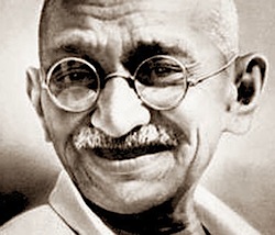Алдымен Гандидің өмірбаянынан деректер берейк. Ағылшын тілдегі деректерден төмендегідей жәйттер айқын болды.[1] Мохандас (кейін Махатма аталған ағылшын - үндіше аты Mohandas Karamchand Gandhi) Ганди 1869–1948 жылдыры өмір сүрген, туған жері Индияның Porbandar, Kathiawar деген жері. Ол дәулеттті отбасында туған. Әкесі сол өлкенің бас министрі болған. Гандидің балалық шағы индуизм дініне берілген шешесінің ықпалында өтті. Сондықтан ба Мохандас Гандидің өзі индуизмнің Вишну құдайын қатты дәріптеген, кейінен джайнизм жолында болады, көне индуизмнің моральдық принциптеріне қатты беріледі. Әсіресе, озбырлыққа төзімділікпен қарсы тұру, индуистік ораза –ауыз бекіту , медитация , ет тағамдарын татпау , кейін тіпті темекі тартудан бас тартады.