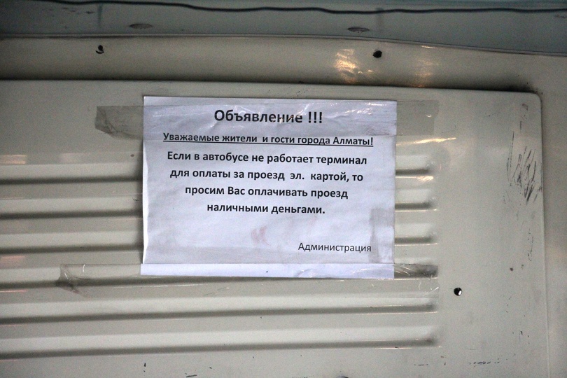 Таң сәріден алматылық автобустар кондукторсыз және валидатор құрылғыларынсыз рейске шықты. Жол ақысы үшін қолма-қол есеп айырысу алынып тасталған соң, қоғамдық көліктердегі жолақы төлеу жүйесін бақылаушылар саны да артып, әрбір аялдамадан қылаң беруде.