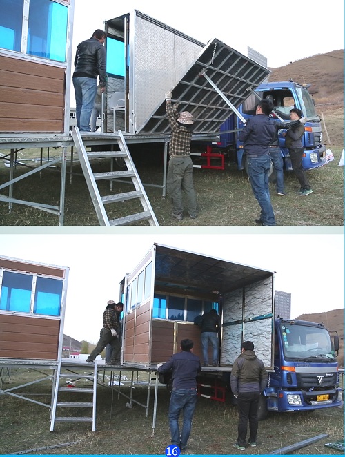 Осы ретте жүк көлігінің базасында жасалған далалық сахна туралы таратып айта кеткен жөн сияқты. Атаулы мерекелерді атап өту кезінде далада ұйымдастырылатын концерттік шаралар біршама қиындық туғызатыны белгілі. Ен далада сахна әзірлеу, орнату, оны тоқпен, жарықпен қамтамасыз ету әлі күнге қол жұмысымен атқарылып жүргені, ұзақ уақыт пен үлкен еңбек күшін талап ететіні белгілі. Ал, өнертапқыш ойлап тапқан және бір данасын қолданысқа әзірлеген жобаны кең көлемде жүзеге асырсақ мұндай қиындықтар болмас еді.