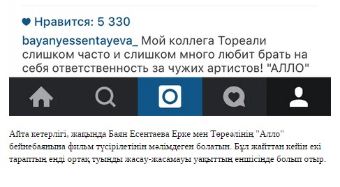 Aıta keterligi, jaqynda Baıan Esentaeva Erke men Tóreáliniń "Alo" beınebaıanyna fılm túsiriletinin málimdegen bolatyn. Bul jaıttan keıin eki taraptyń endi ortaq týyndy jasaý-jasamaýy ýaqyttyń enshisinde bolyp otyr.