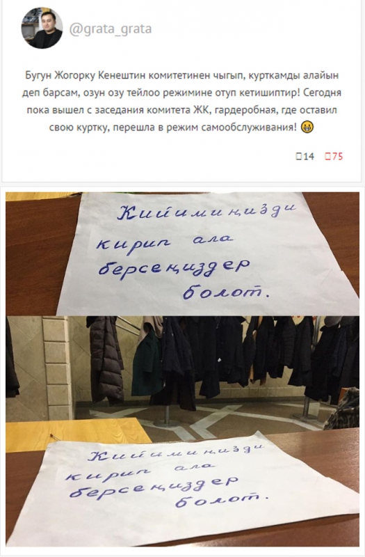 Nakanýne Generalnyı dırektor OTRK Ilım Karypbekov razmestıl na svoeı stranıchke post ı foto, v kotorom ýdıvlálsá kak rabotaıýt v garderobe Jogorký Kenesha soobshaet kabarlar.org