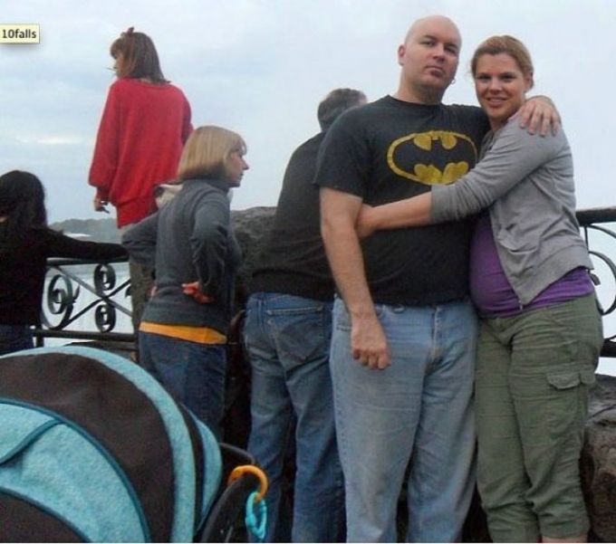 9. Fotodaǵy juptyń artynda turǵan qyzyl jeıde kıgen qyz birneshe sekýndtan keıin tepe-teńdigin joǵaltyp, Nıagara sarqyramasyna qulap ketken.