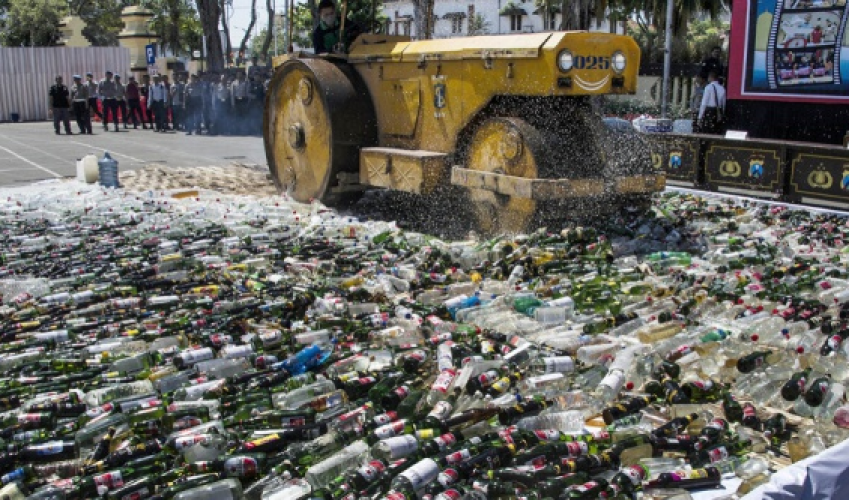 Qala turǵyndary bul kúni jol tegistegish mashınamen 100 000-ǵa jýyq ishimdik bótelkelerin janyshtalǵanyna kýá boldy. Jergilikti polısıa qyzmetkeri Lılı Djafardyń aıtýynsha, alkogóldi ishimdikter Ramazan aıyna deıin Sýrabaı qalasynyń barlyq túkpirinen tárkilenip alynǵan. Sondaı-aq, tekserý kezinde qolǵa túsken esirtki zattaryn da kópshilik kózinshe órtep jibergen.