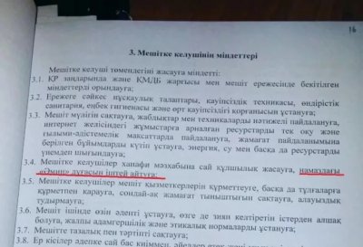 Meshitke kelýshiniń mindetteri jazylǵan erejeniń 3-4 bólimine sáıkes «ámın» degen sózdi daýystap aıtýǵa tyıym salynady eken.