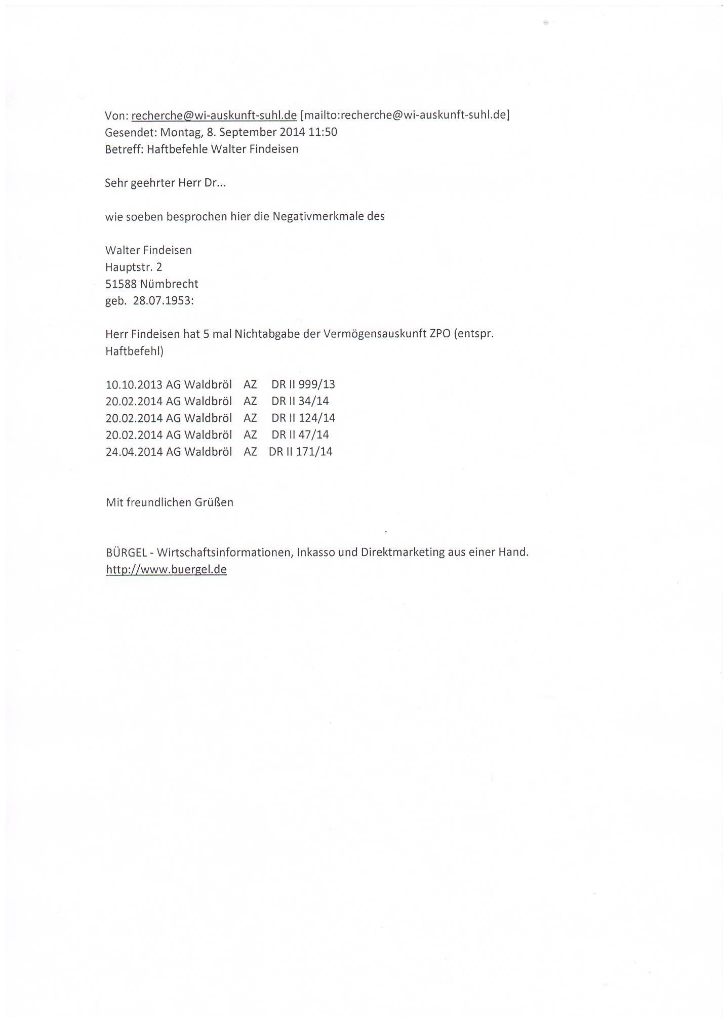 - 3. İskerlik baılanys reıtıń týraly aqparat ortalyǵynyń Fındzaın (Walter Findeisen) jáne onyń fırmasynyń jumys jasaýǵa asa qaýipty ekendigi kórsetilgen resmı anyqtamasy