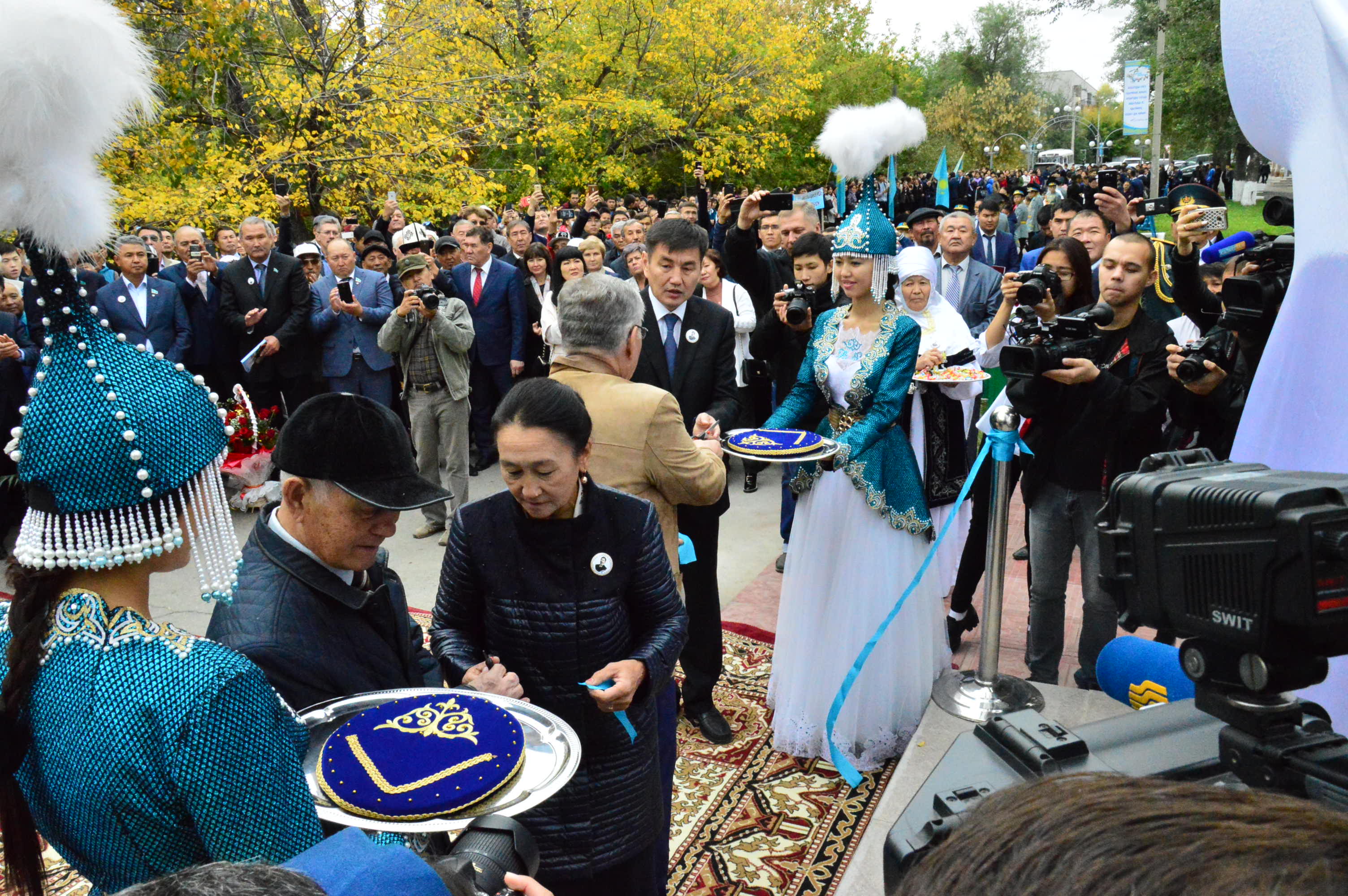 Eskertkishtiń ashylýyna jınalǵan halyqpen birge Parlament Májilisiniń depýtaty, «Egemen Qazaqstan» gazeti AQ basqarma tóraǵasy, Halyqaralyq Túrki akademıasynyń prezıdenti Darhan Qydyráli, Gýmılev atyndaǵy Eýrazıa ulttyq ýnıversıtetiniń prorektory Dıhan Qamzabekuly, profesory Ǵarıfolla Esim SHQO ákiminiń birinshi orynbasary Nurymbet Saqtaǵanov, Semeı qalasynyń ákimi Ermak Sálimov t.b. qatysty. Ult kóseminiń eskertkishiniń ashylý saltanatyna kelgen belgili jazýshylar men aqsaqaldar izgi tilekterin bildirdi.