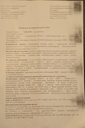 Búginde Ábilseıit kún saıyn gemodıalız baǵdarlamasy boıynsha aptasyna 3 kún (ár kúni 4 saǵattan) ambýlatorlyq em qabyldaýda.