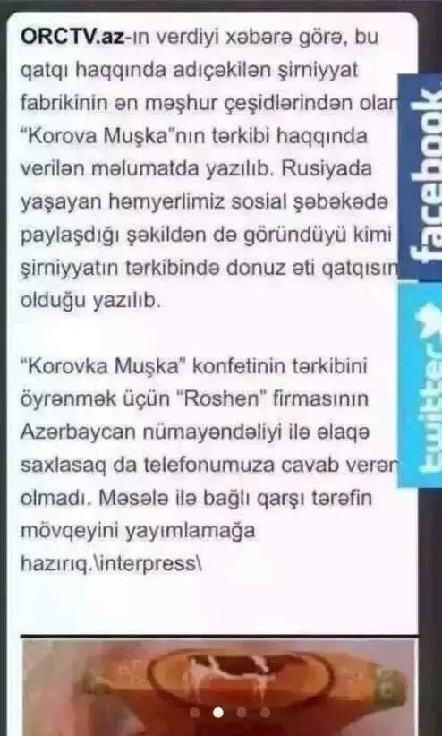 Ókinishke oraı, sol shetelden jetkizilip jatqan azyq-túliktiń jáne ózge bir elder úshin «as» sanalatyn keıbir zattardyń qanshalyqty jeýge jaramdy ekenin, adal-aram ekenin paryqtap jatyrmyz ba? Jaqynda Ázirbaıjan gazetteriniń biri ýkraınalyq «Roshen» kompanıasynyń kondıterlik ónimderi quramynda dońyz maıynyń elementi bar ekenin jazdy. Materıaldy jazǵan jýrnalıs kompanıanyń Ázirbaıjandaǵy ókildigine qońyraý shalyp, mardymdy jaýap ala almaǵan. Ázirbaıjandyq basylym jarıalanymynan soń «Qamshy» portaly redaksıasyna oqyrmandardan, tipti Qytaıdyń İle Qazaq Avtonomıaly oblysynyń Jastar birlestiginen osy kámpıtter jáne basqa da reseılik keıbir ónimderdiń kúmándi quramy týraly suraýlar kelip jatyr.