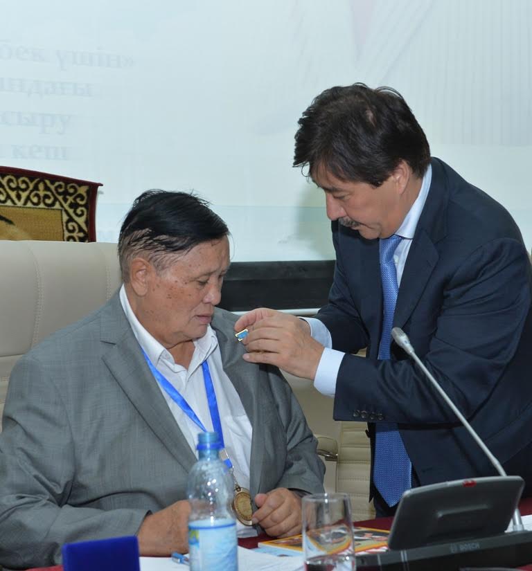 Әл-Фараби атындағы Қазақ Ұлттық университетінің ректоры Ғалымқайыр Мұтанұлы кездесу соңында Сәбит Досанов мырзаға университет дамуына айрықша үлес қосқаны үшін әл-Фараби атындағы алтын медалін табыс етті.
