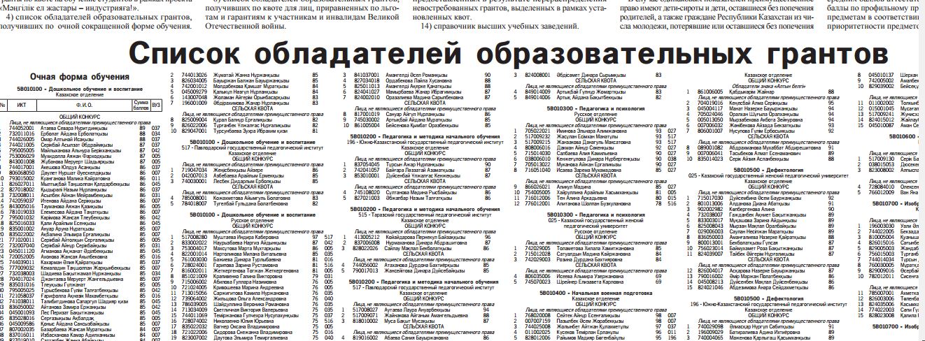 БІЛІМ ГРАНТЫ ИЕГЕРЛЕРІНІҢ ТОЛЫҚ ТІЗІМІМЕН МЫНА СІЛТЕМЕ БОЙЫНША ТАНЫСА АЛАСЫЗДАР.