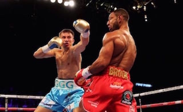 GGG одержал сокрушительную победу над ранее не побежденным чемпионом мира в полусреднем весе по версии IBF британским боксером Келлом БРУКОМ. В пятом раунде бой остановили секунданты Брука, выбросив полотенце. Казахстанец в 14-й раз защитил титул IBO, во второй - IBF и впервые - WBC.