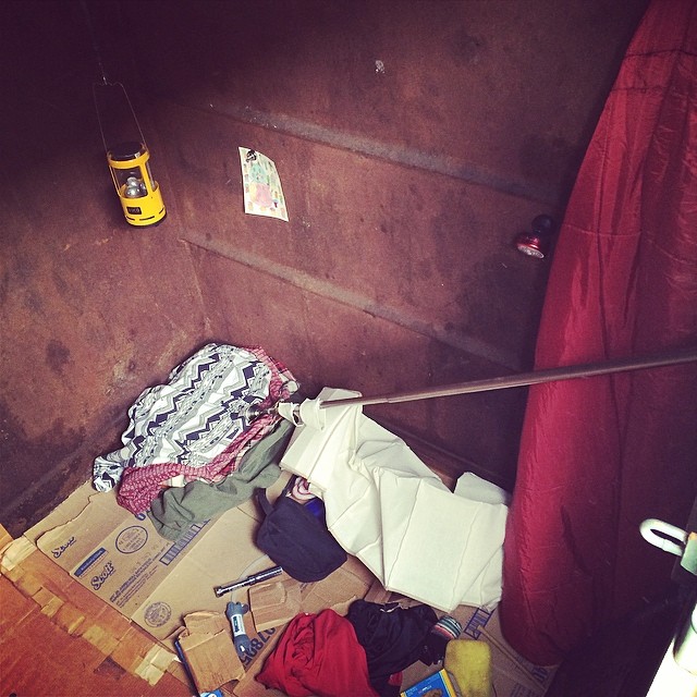 2014 жылы Джефф қоқыс салатын контейнерге көшті. Онда ешқандай жағдай жасалмаған. Алғашқы алты айда ол қораптардың үстінде ұйықтады. Ең алдымен бөлмесіне желдеткіш орнатты. Себебі күндіз контейнер 55 градусқа дейін қызатын. Келесі кезекте қабырғаларды бояу, еден жасау болды. Уақыт өте келе контейнердің сәні кіре бастады.