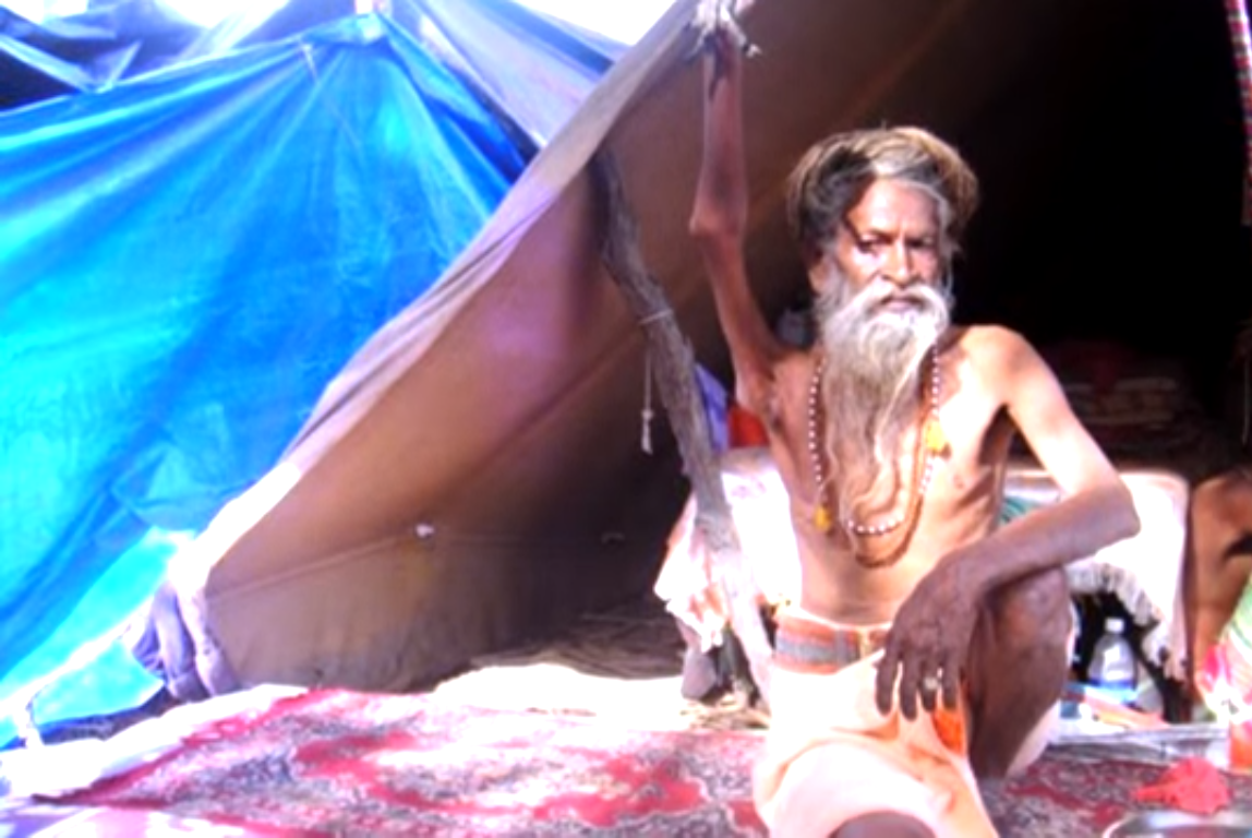 Қарапайым киім киген монах, Үндістан елін шарлап, қайыршылық күн кешіп жүріп, дұға жасайды екен. Кейін ол толықтай жаңару мақсатында құлшылықтың жаңа түрін ойлап тапқысы келген. Сөйтіп ол оң қолын көтеріп, оны ешқашан түсірмеуге байланысты шешім қабылдайды.