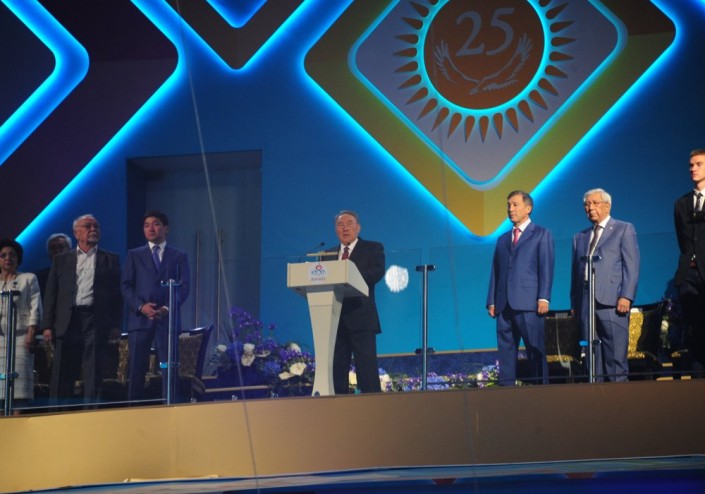 "1000-لەتنيي يۋبيلەي الماتى ۆمەستە س الماتينسامي وتمەچاەت نە تولكو كازاحستان ، نو ي ۆسە ميروۆوە سووبششەستۆو. ەتا يستوريچەسكايا داتا ۆكليۋچەنا ۆ كالەندار يۋبيلەينىح دات يۋنەسكو. ي ەتيم رەشەنيەم وسوبو پودچەركنۋتا ۋنيكالنايا رول الماتى ۆ رەگيونالنوم گلوبالنوم رازۆيتيي. سۆياششەننايا زەمليا ۋ پودنوجيا سەدىح ۆەرشين الاتاۋ ۆيدەلا نەمالو سوبىتيي ۆ سۆوەي بولشوي يستوريي، زدەس پروحوديل ۆەليكيي شەلكوۆىي پۋت - پەرۆايا تورگوۆايا وبششەچەلوۆەچەسكايا ماگيسترال، سوەدينيۆشايا ۆوستوك ي زاپاد، سيەۆەر ي يۋگ، وگرومنۋيۋ ەۆرازيۋ. 550 لەت تومۋ نازاد ۆسيا زەمليا جەتىسۋ ستالا بولشوي كولىبەليۋ كازاحسكوگو حانستۆا. زدەس ۆوزنيك ودين يز گلاۆنىح وچاگوۆ ۋنيكالنوي ۋربانيستيچەسكوي كۋلتۋرى ۆسەگو رەگيونا سەنترالنوي ازيي. وسوبۋيۋ رول الماتى سىگرال ۆ حح ۆەكە. ۆ 1929 گودۋ گورود پرينيال ەستافەتۋ كازاحستانسكيح ستوليس ي ۆىروس دو مەگاپوليسا-ميلليوننيكا. الماتى ۆىپالا چەست بىت پەرۆوي ستوليسەي سۋۆەرەننوگو ي نەزاۆيسيموگو كازاحستانا. پوەتومۋ سيمۆوليچنو چتو 1000-لەتيە گورودا مى ۆسە ۆسەنارودنو پرازدنۋەم ۆ گود 25-لەتنەگو يۋبيلەيا نەزاۆيسيموستي ناشەي رودينى"، - سكازال نۋرسۋلتان نازاربايەۆ، ۆىستۋپايا س رەچيۋ.
