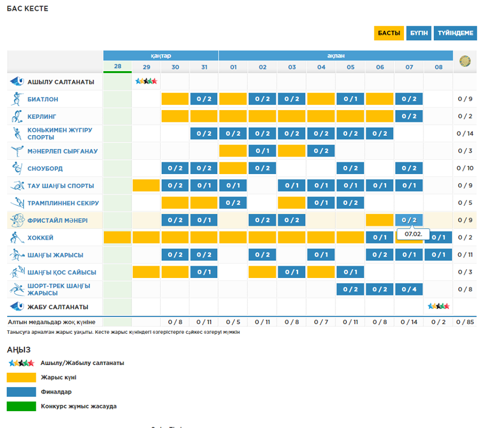 20:00 - قازاقستان - ۇلىبريتانيا، توپتىق كەزەڭ. ايتا كەتەيىك، «حالىق ارەناداعى» بيلەتتىڭ قۇنى 500-700 تەڭگەنى، ال بالۋان شولاق اتىنداعى سپورت سارايىندا بيلەتتىڭ باعاسى - 300-500 تەڭگەنى قۇرايدى.