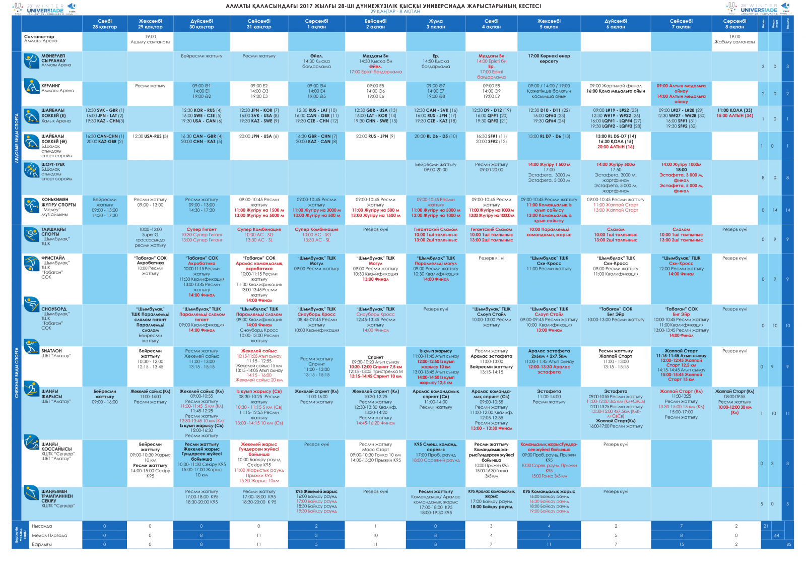 الماتىدا وتەتىن 28ء-شى بۇكىلالەمدىك ۋنيۆەرسيادانىڭ اشىلۋ سالتاناتى ەرتەڭ - 29 قاڭتار كۇنى وتەدى.