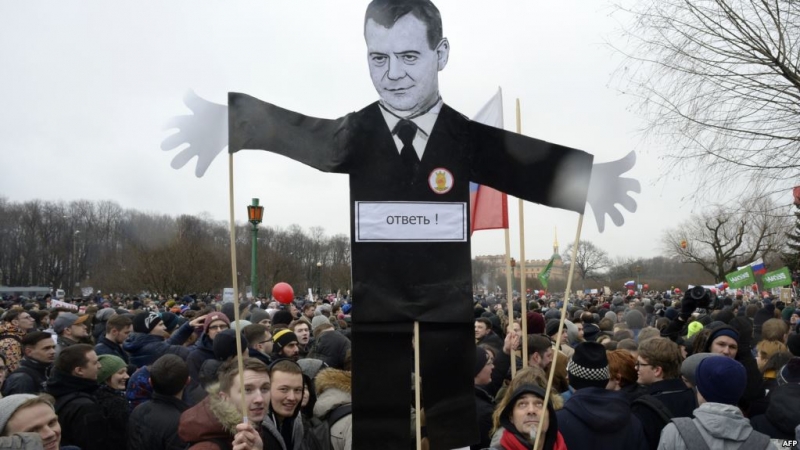 تاسس اگەنتتىگىنىڭ مالىمەتىنشە، مەدۆەديەۆ وزىنە قاتىستى كوررۋپسيالىق زەرتتەۋلەردى «ورنىسىز سوقتىعۋ» دەپ باعالاپ: «مۇنداي اكسيا كىمگە قاجەت دەپ ويلايسىزدار؟ ارينە، ءوزىنىڭ ناقتى ساياسي ماقساتى بار ادام ءۇشىن پايدالى»، دەيدى ول.