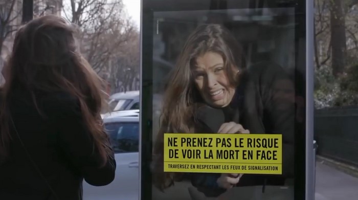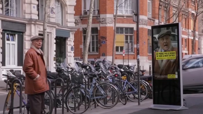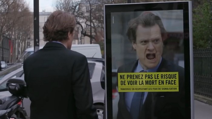ءپاريجدىڭ اشىق اسپان كۇندەرىنىڭ بىرىندە كوشە بويىندا ءبىر توپ ادام جولدى كەسىپ وتپەكشى بولادى. باعدارشامدا قىزىل جانسا دا ادامدار تەلەفوندارىنا قاراپ جولدان وتە بەرەدى.